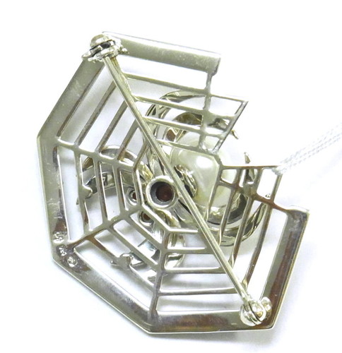 碌山から、ガーネットとパールを使った蜘蛛の巣ブローチ入荷