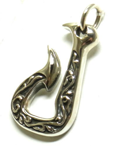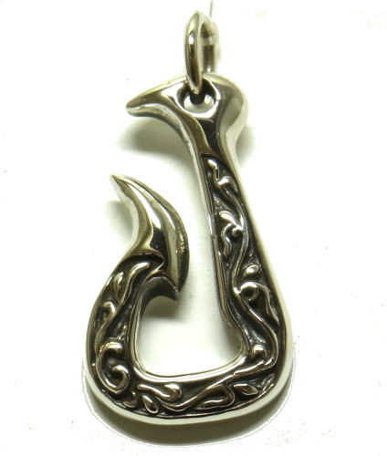 フィッシュフック(釣り針)デザインで、唐草模様がほどこされています