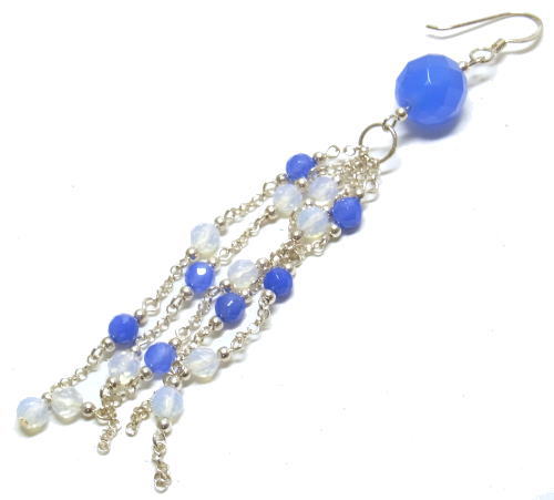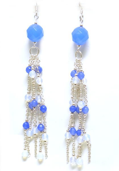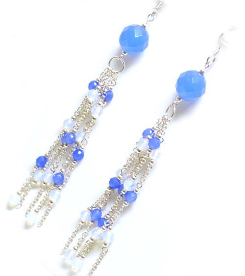 ブルーカルセドニー、ブルームーンストーンを使ったロングピアス