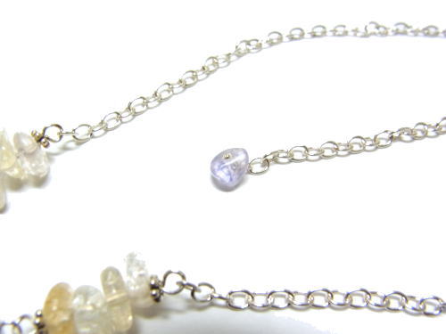 シトリンと水晶を使っていて、淡い黄色と白のグラデーションのような、とっても優しい色合い!