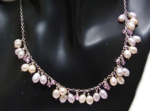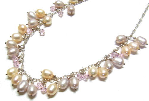 薄いピンクとパープルとオレンジのパール、ビーズを使ったネックレスです。