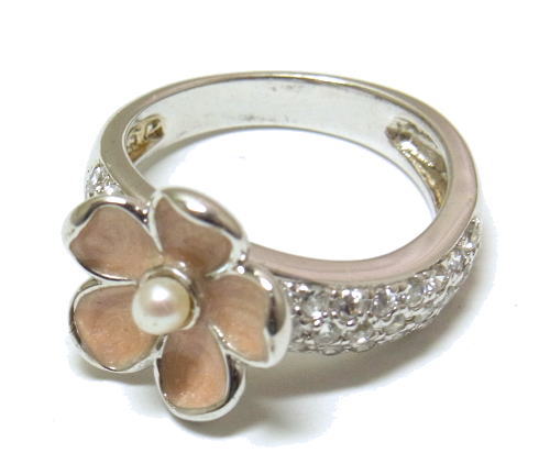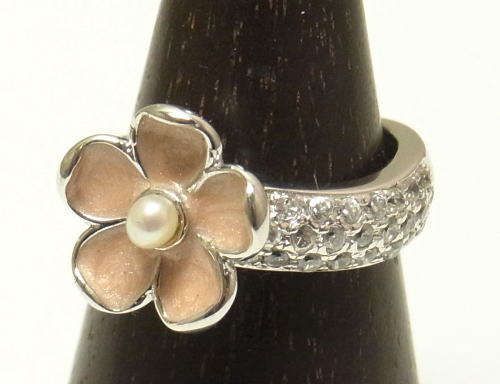 優しい薄ピンクのお花をデザインしたリング