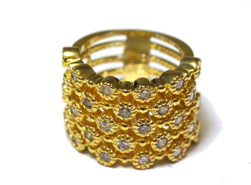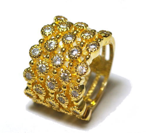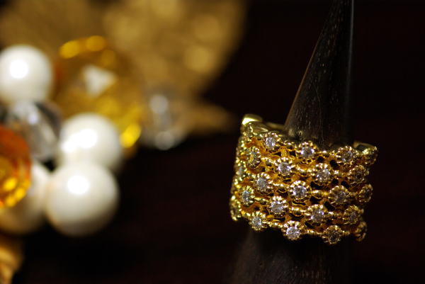 1石づつフクリン留めされたキュービックがキラキラ輝いて、とっても雰囲気あるデザインリングです