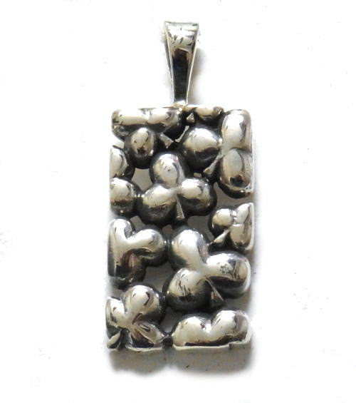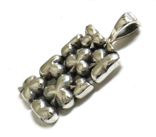 大小のクローバーがデザインされた、プレート型ペンダントで、隙間は透かしになっています。