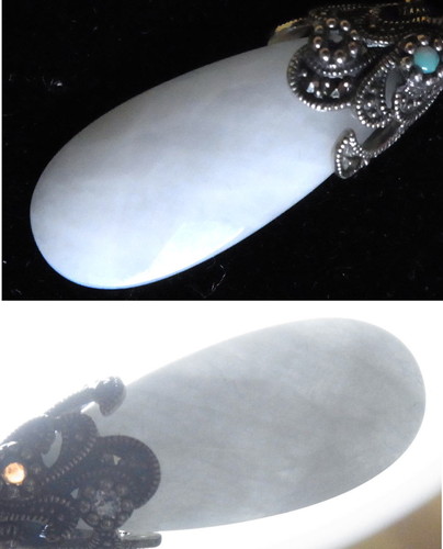 ホワイトクォーツァイトは真っ白ではなく、よく見るともやもやっとした半透明感がある石です