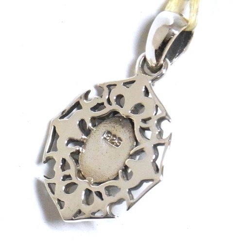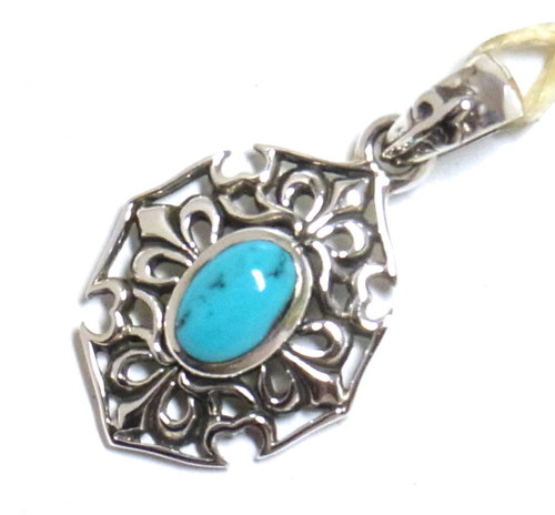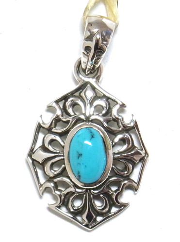 ハウライトターコイズを使用し、透かしのトライバルデザインに仕上げたペンダント。