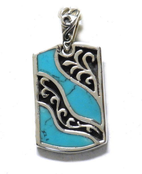 唐草デザインのプレートに、ターコイズ(練り)を埋め込みました