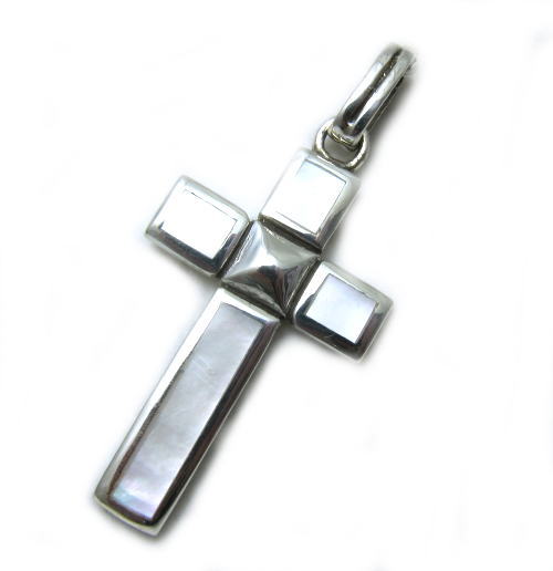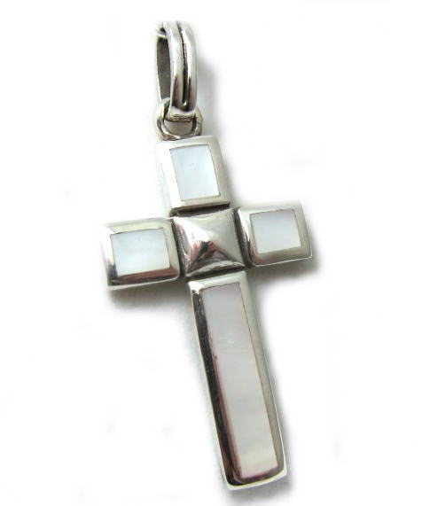 白蝶貝のインレイされた十字架ペンダント。