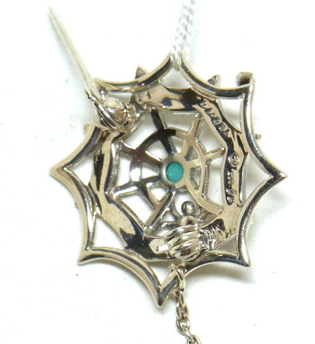 【碌山】クモと蜘蛛の巣のブローチ(ターコイズ)(704C0004-TQ)