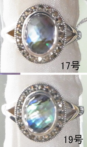 やや楕円のデザインで、碌山のデザインの中では小ぶりなので、普段使いにもいいですね! アバロン貝の上に、カット水晶を貼り合わせたデザインで、 角度によって色を変えるアバロンの魅力が引き立ちます また、周りにはマルカジットが埋め込まれています 天然素材のため、アバロンの色にばらつきがあります。 ※号数の入っている画像が現物です。 ※お使いのブラウザによっても実物と色味が異なることがございます。 ご了承ください アンティークブランド碌山 ■[サイズ]リング幅:最大(前面)約15.6mm リング腕約2mm 厚み:約8.4mm(石部) 最小1.0mm ■素材:silver925 ■使用石:アバロン、水晶、マルカジット