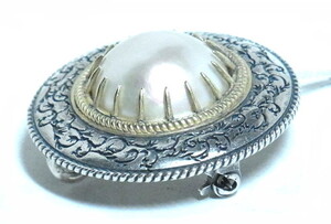 【碌山】マベ真珠のアラベスク ペンダントブローチ