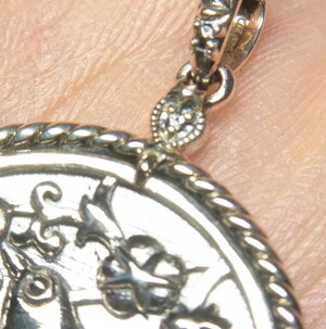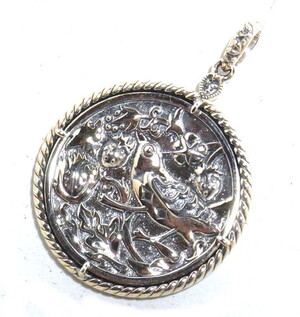 その繊細な模様をコインペンダントに仕立てました。表裏にデザインの入った両面ペンダントです。