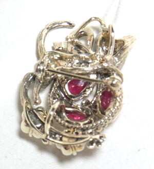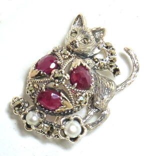アンティークブランド碌山から、ルビーとにゃんこのペンダントブローチ入荷です