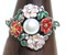 バラの花や葉にはふんだんにエナメルを使い、天然石を使用したかわいいリングです。